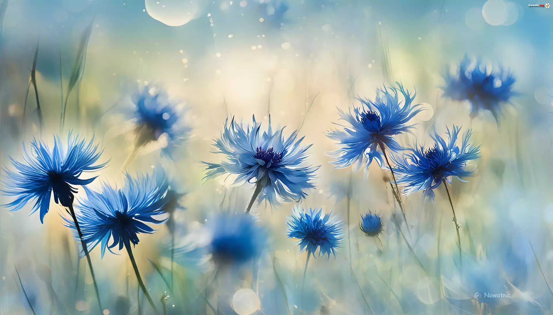 Chabry, Niebieskie, Kwiaty, Grafika - Zdjęcia