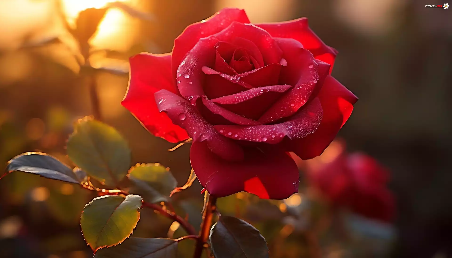 Kwiat Czerwona, Róża, Krople, Grafika