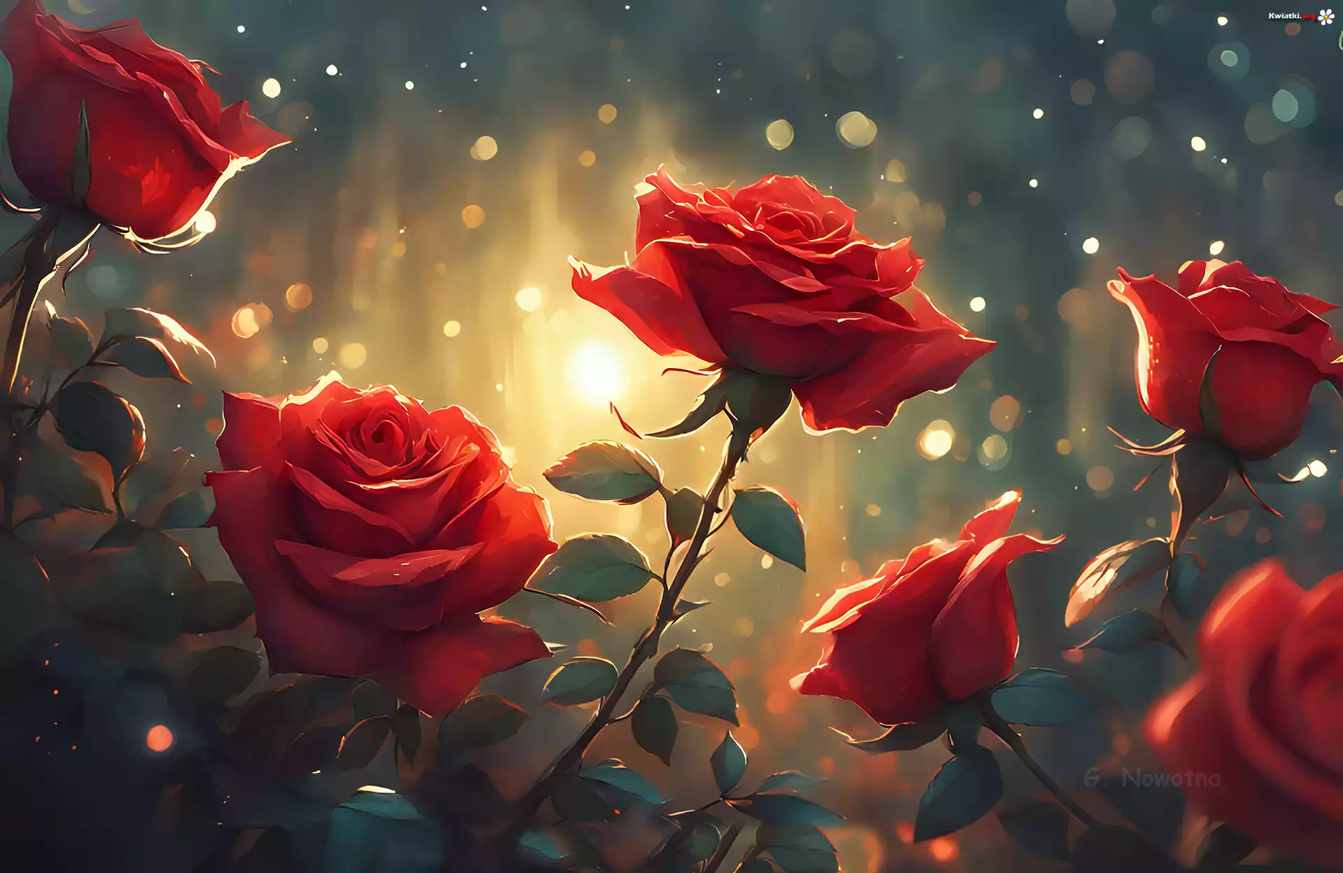 Czerwone, Róże, Kwiaty, Grafika - Zdjęcia