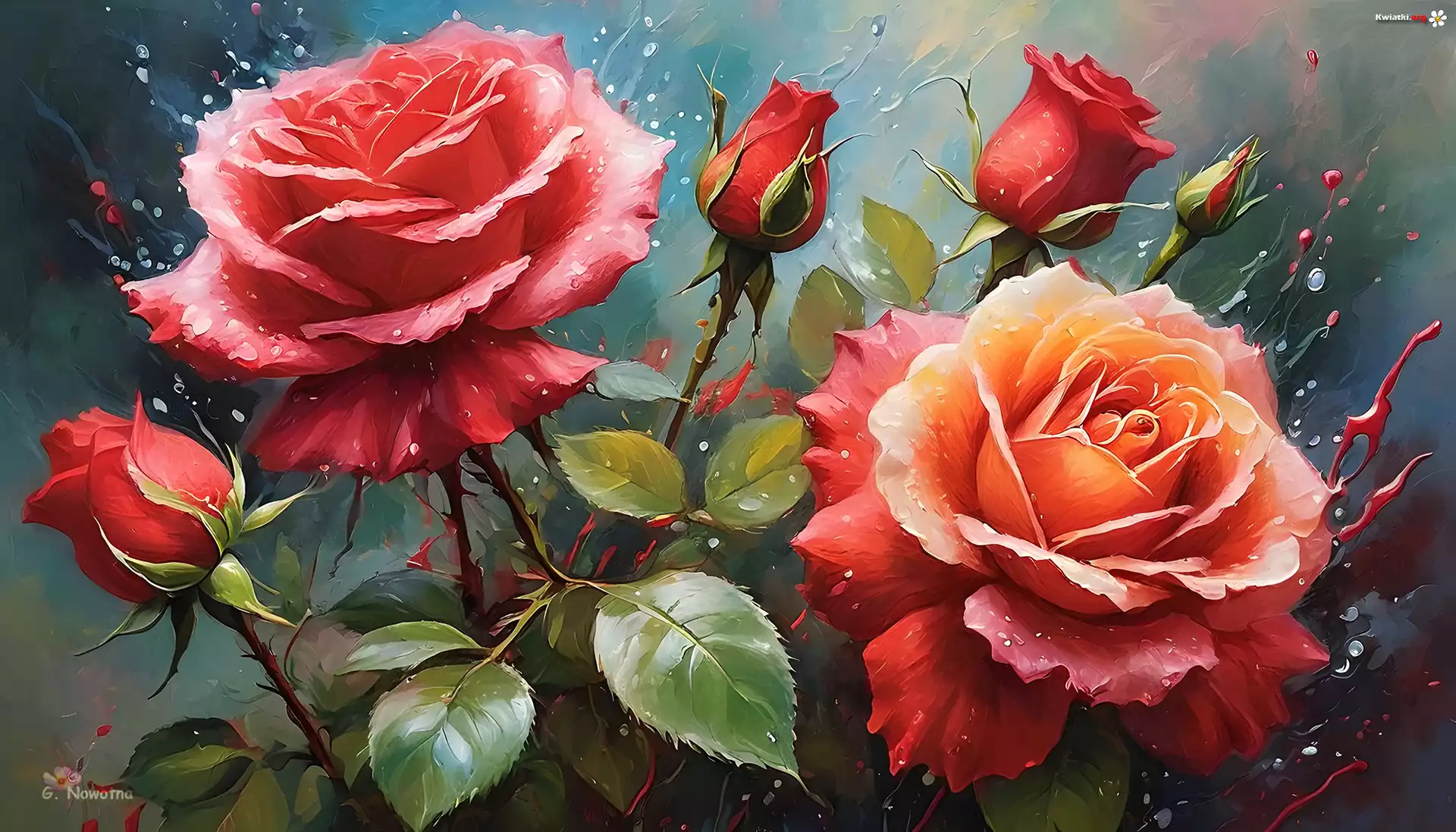 Czerwone, Róże, Pąki, Grafika - Zdjęcia