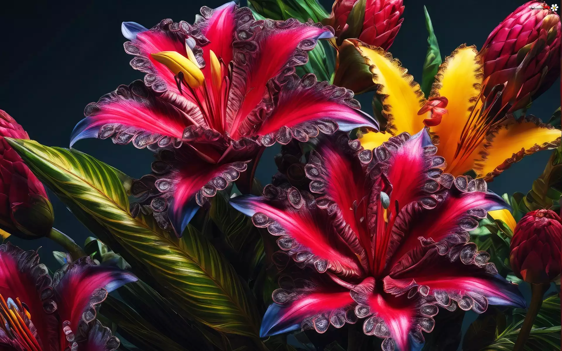 Egzotyczne, Kolorowe, Kwiaty, Grafika - Zdjęcia