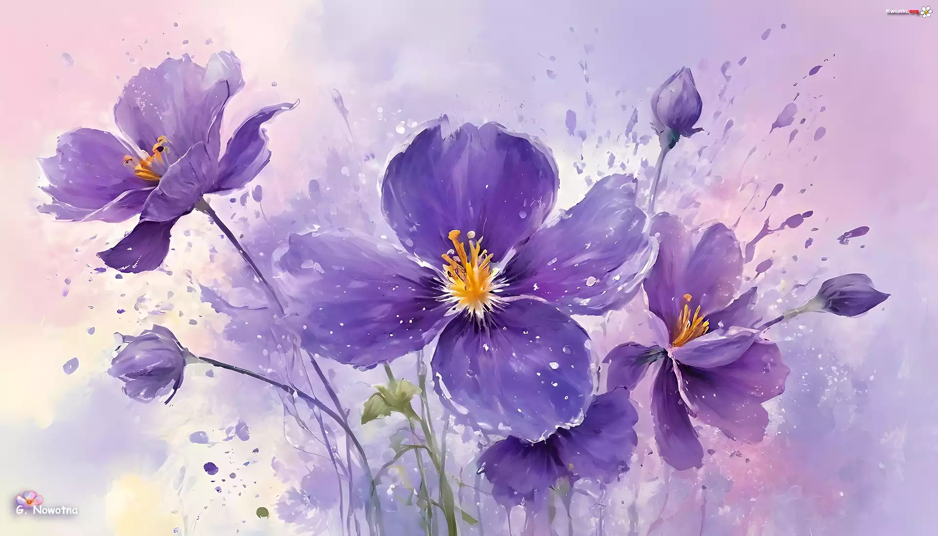 Fioletowe, Kwiaty, Pąki, Grafika - Zdjęcia