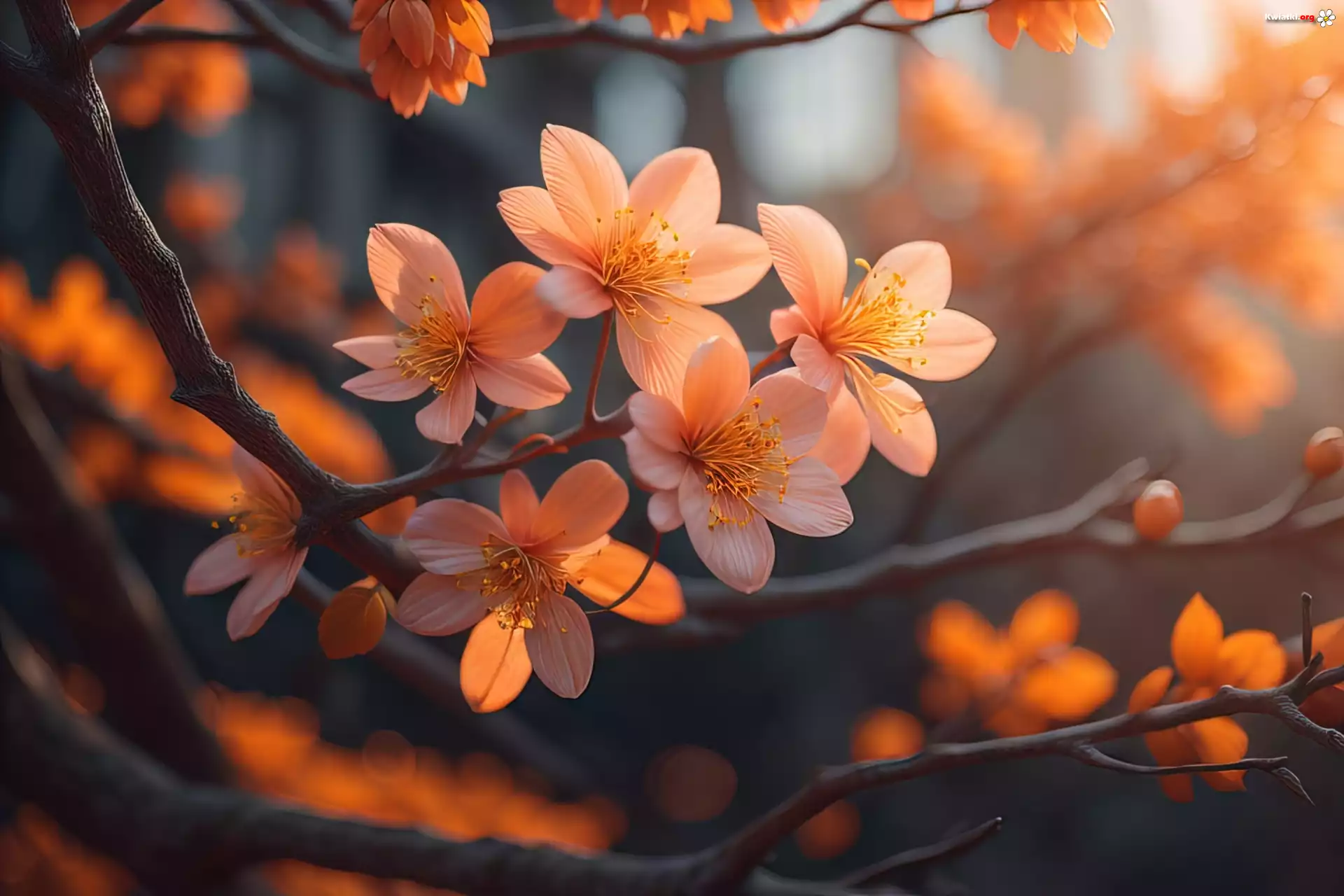 Gałązki, Rozświetlone, Kwiaty, Grafika - Zdjęcia