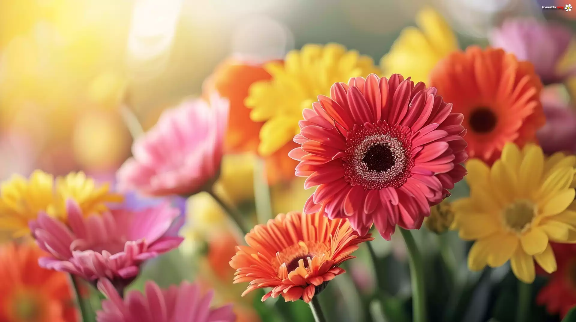 Gerbery, Kolorowe, Kwiaty, Grafika - Zdjęcia