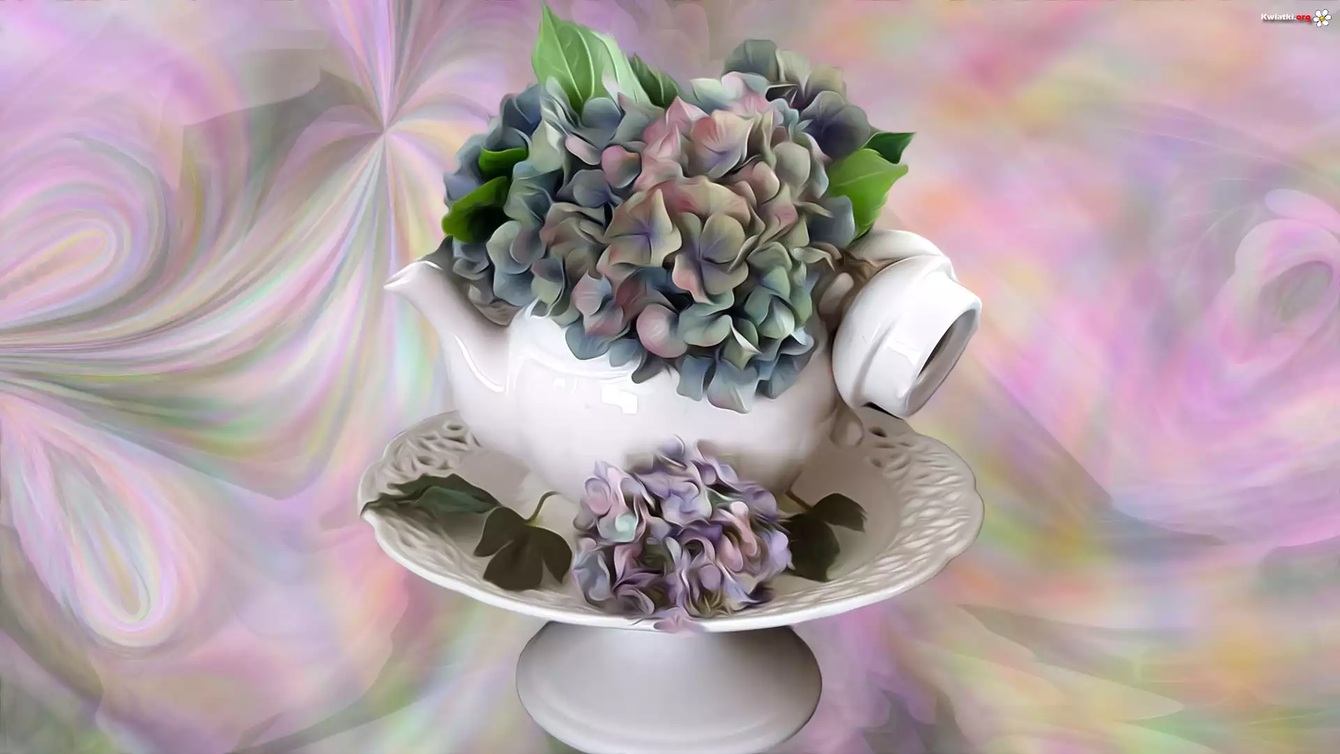 Kwiat Grafika, Kwiaty, Hortensja, Patera, Imbryk, Czajniczek