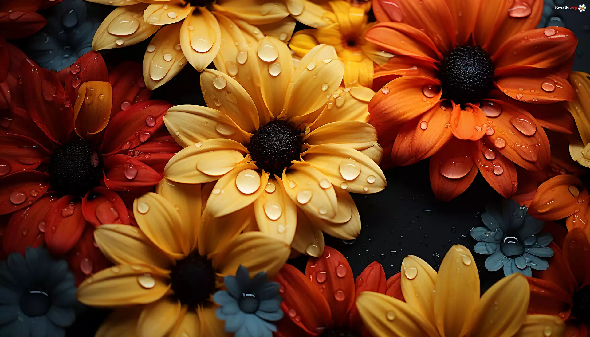 Kolorowe, Kwiaty, Krople, Grafika - Zdjęcia