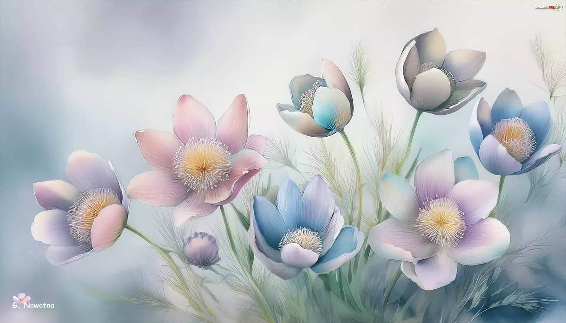 Kolorowe, Sasanki, Kwiaty, Grafika - Zdjęcia