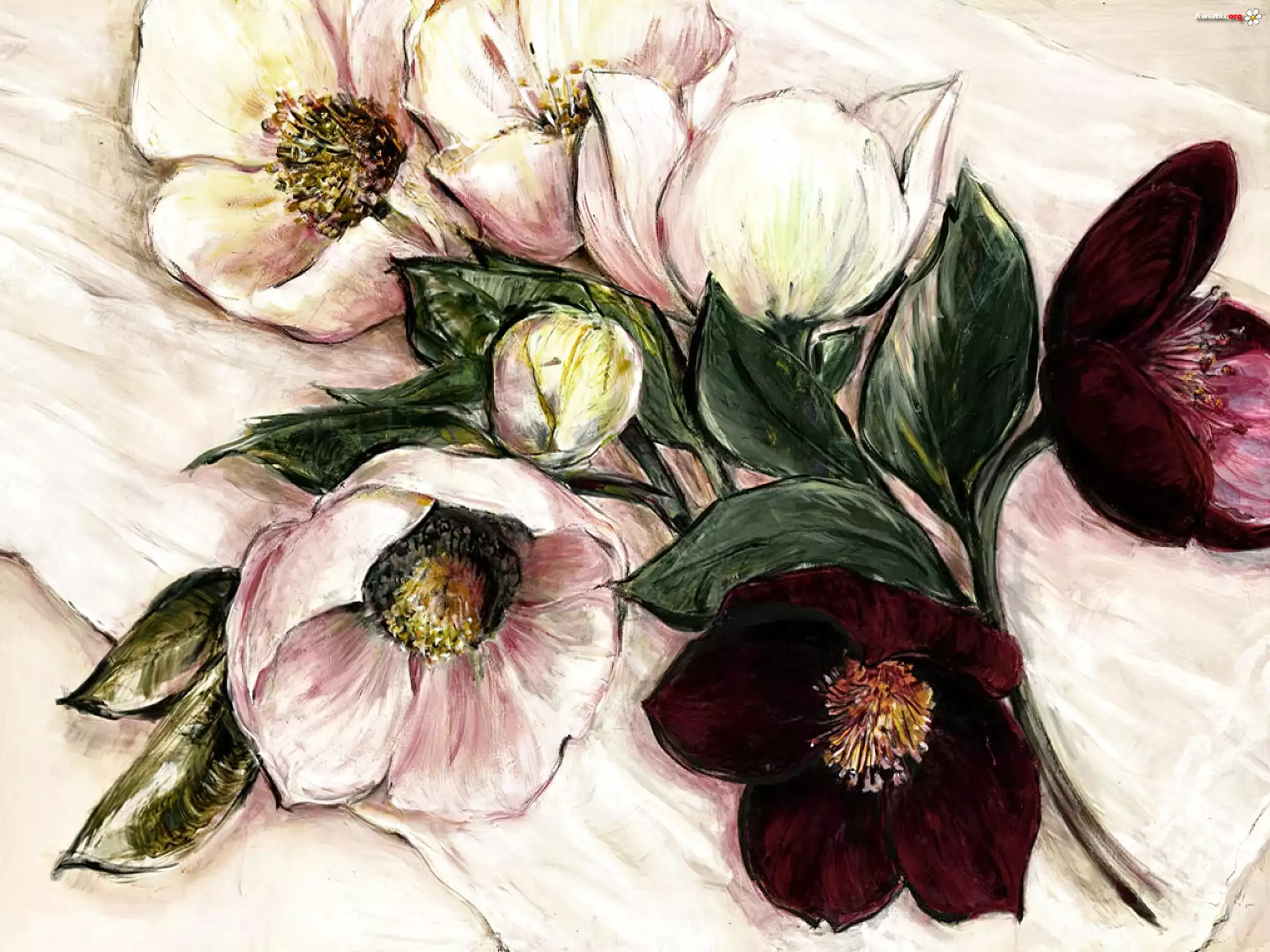 Grafika, Reprodukcja, Obrazów, Kolorowe, Kwiaty - Zdjęcia
