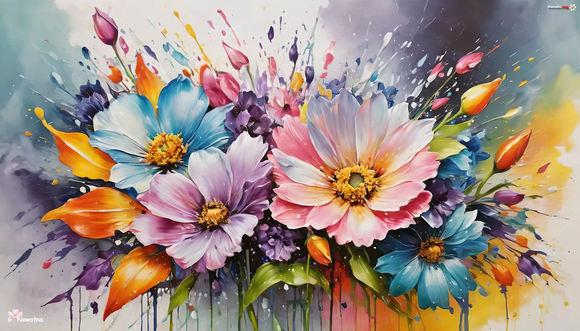 Kolorowe, Kwiaty, Pąki, Grafika - Zdjęcia
