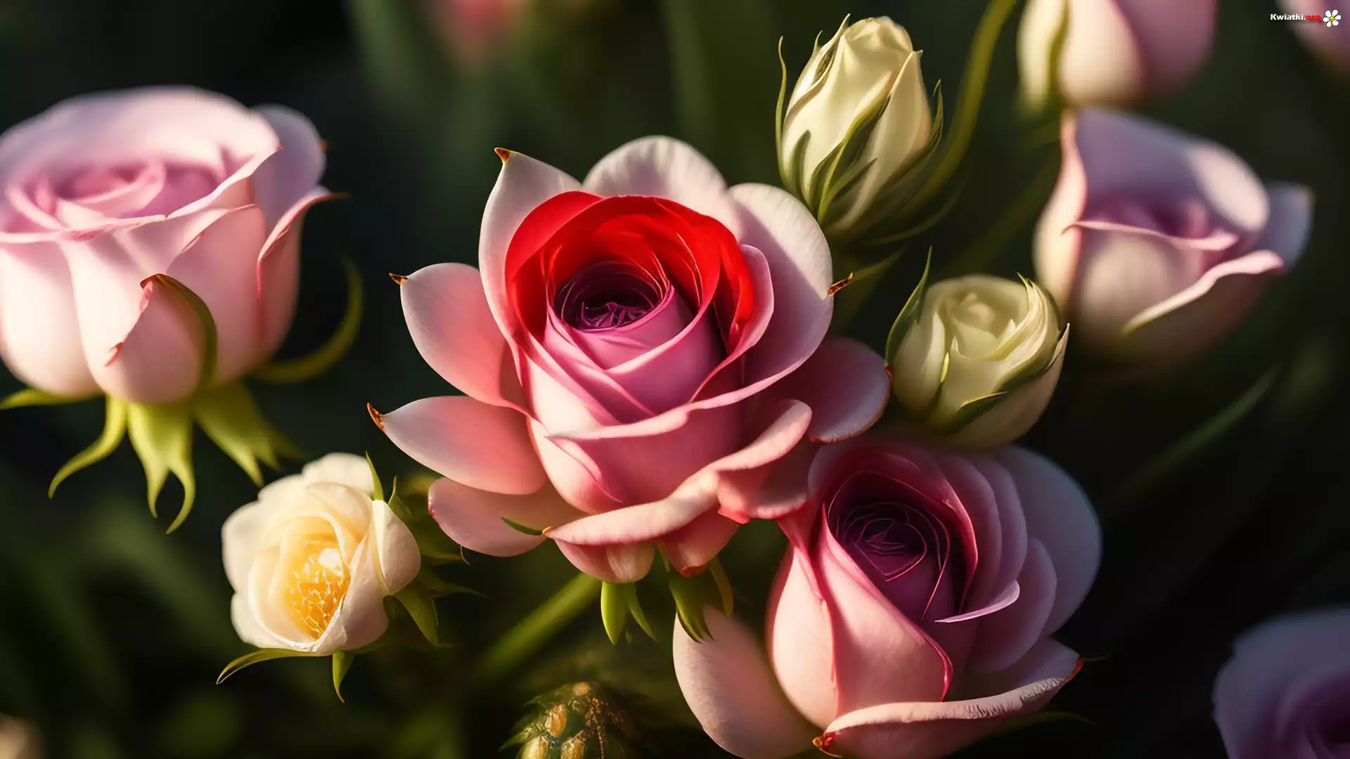 Kwiat Kolorowe, Róże, Pąki, Grafika
