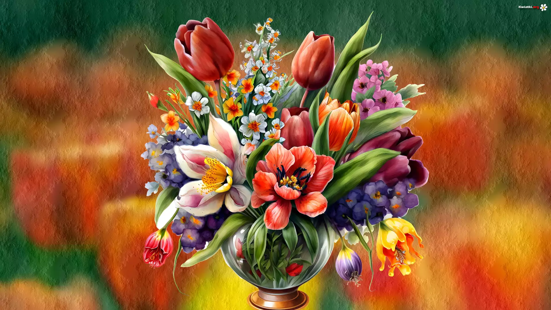Kwiat Kolorowe, Kwiaty, Tulipany, Grafika