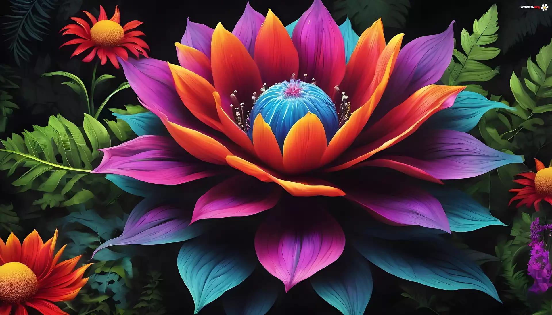 Kolorowy, Kwiat, Liście, Grafika - Zdjęcia