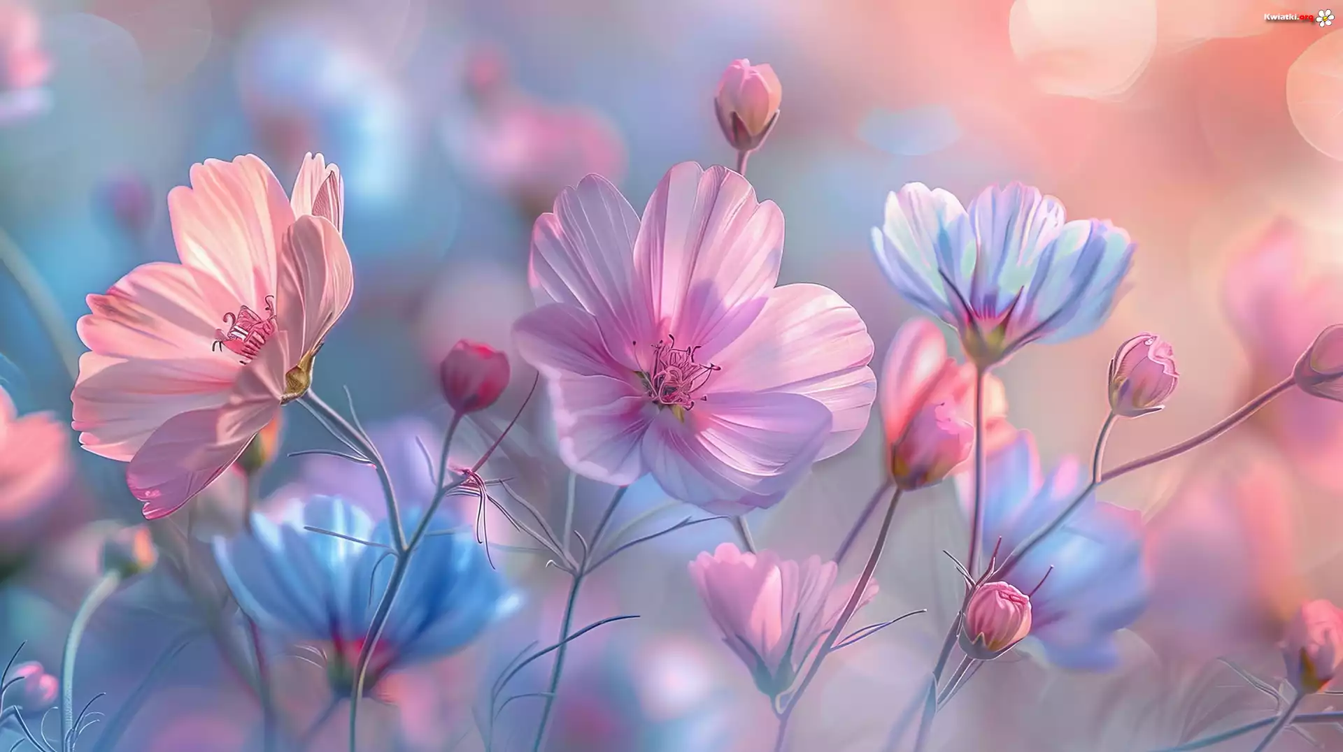 Kosmea, Kolorowe, Kwiaty, Grafika - Zdjęcia
