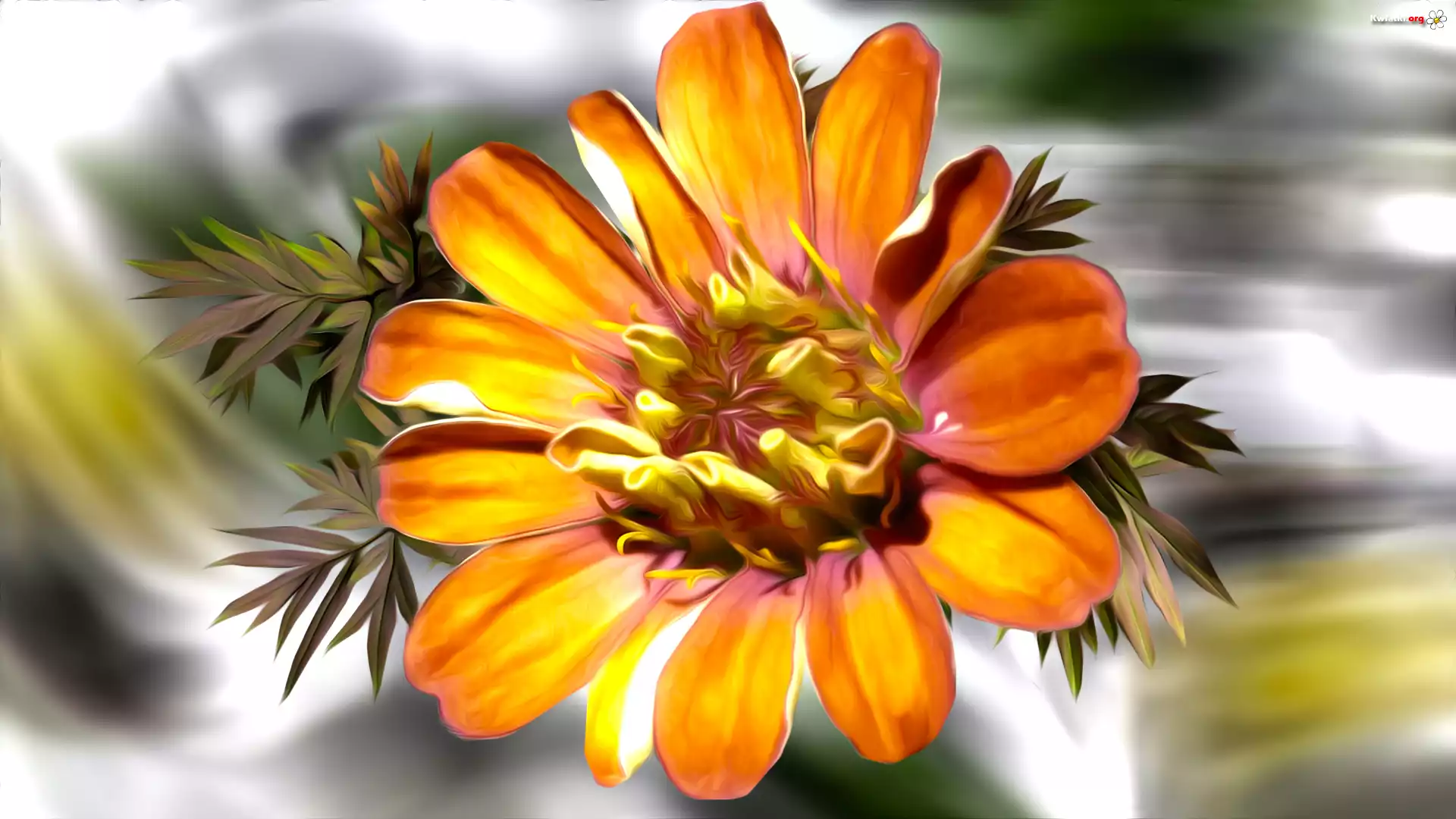 Grafika, Pomarańczowy, Kwiat, Liście - Zdjęcia
