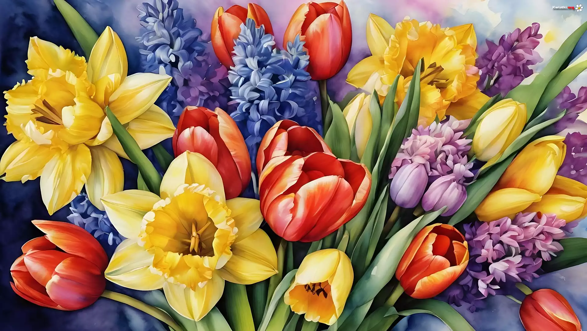 Kwiaty, Bukiet, Akwarela, Grafika - Zdjęcia