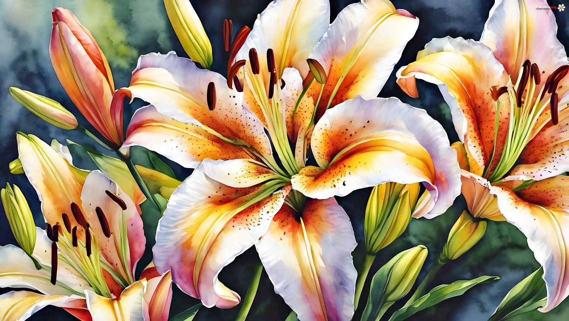 Kwiaty, Lilie, Akwarela, Grafika - Zdjęcia