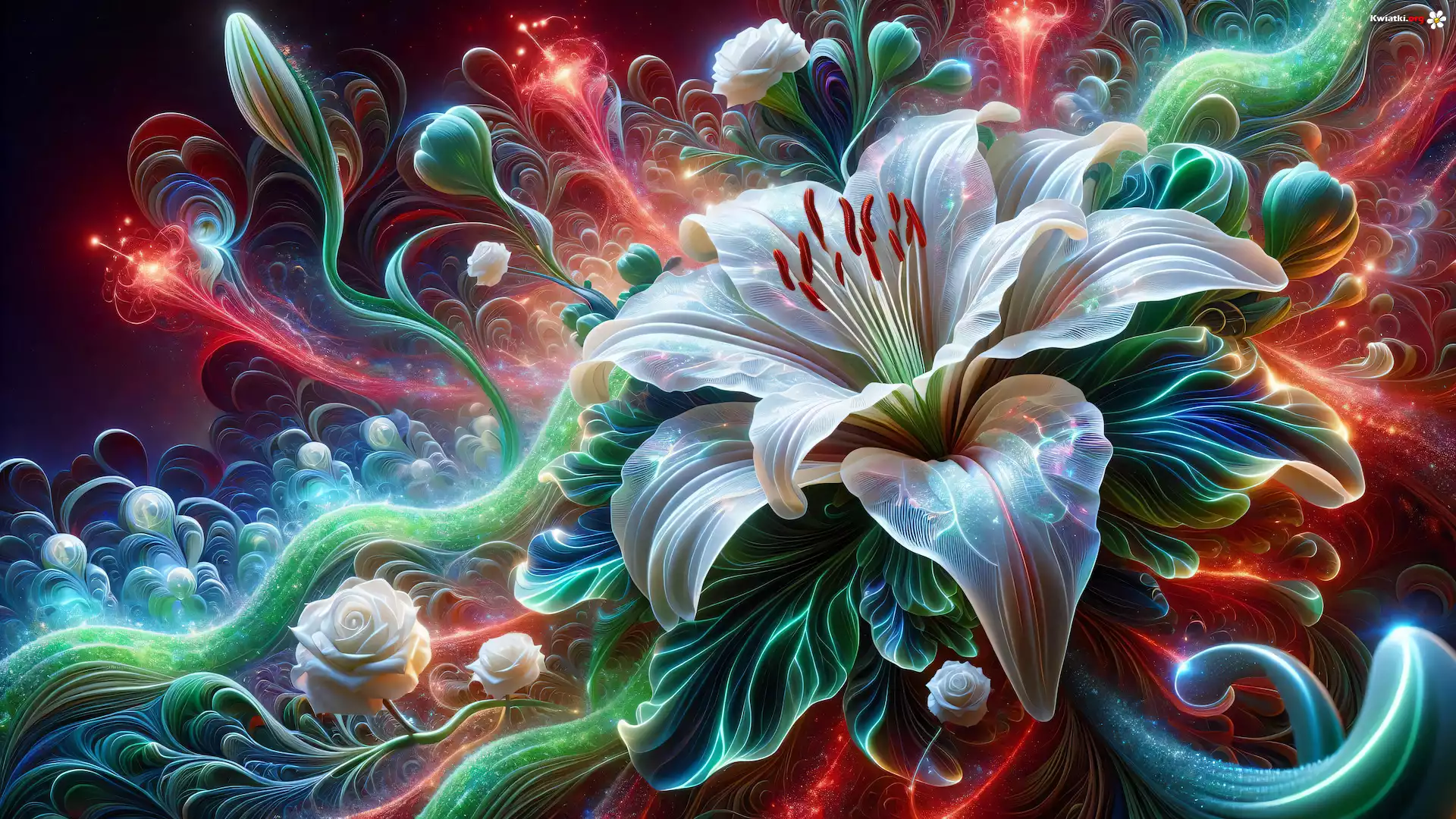 Kwiaty, Lilia, Biała, Grafika - Zdjęcia