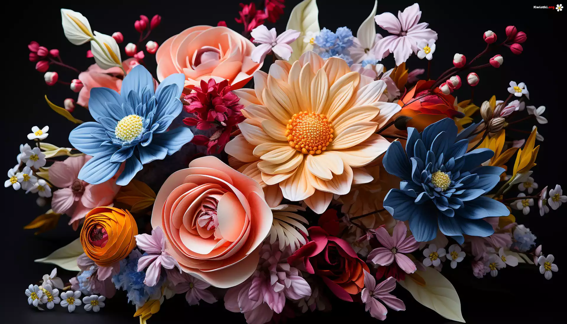 Kwiaty, Wielobarwny, Bukiet, Grafika - Zdjęcia