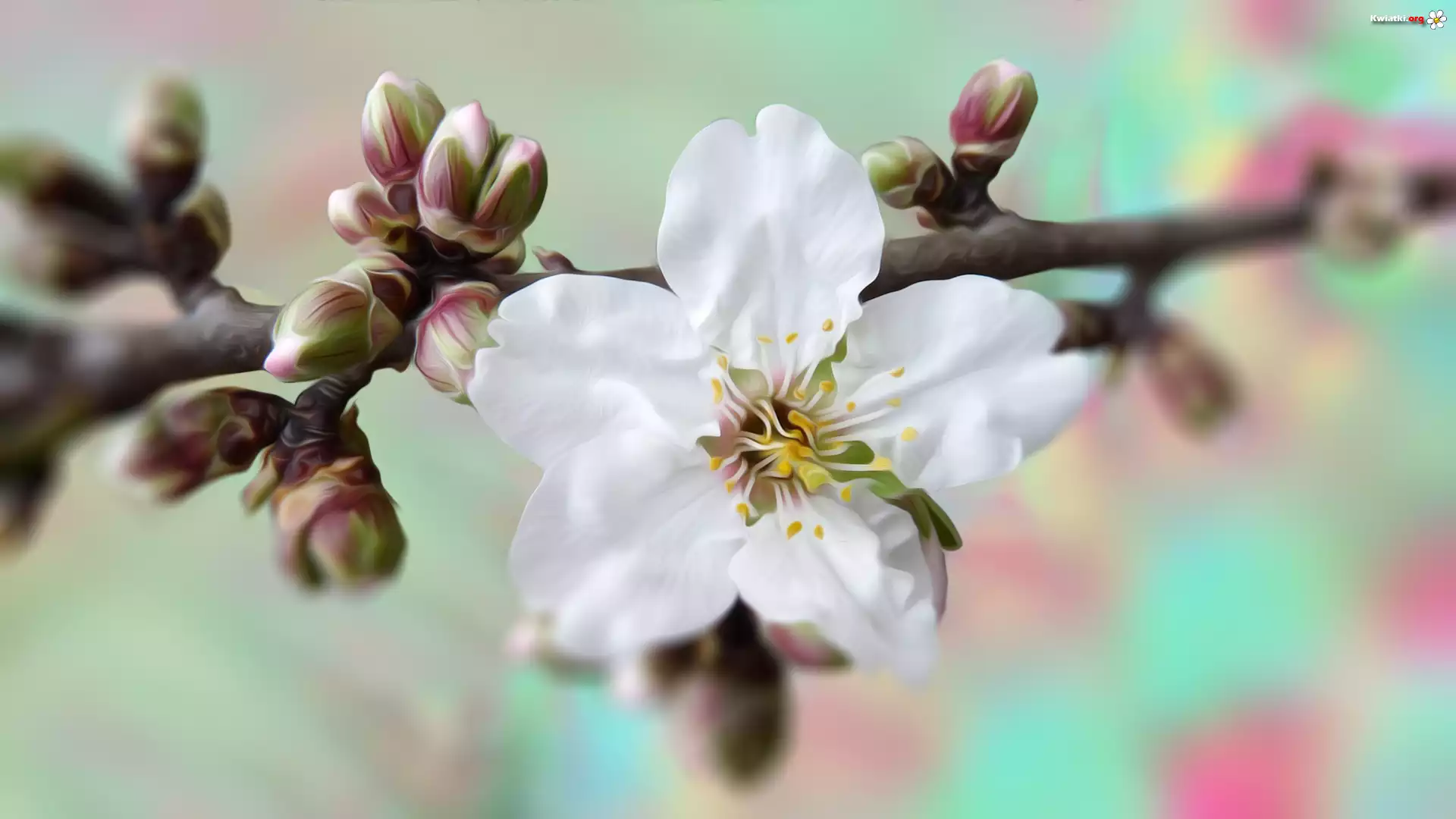 Kwiat Grafika, Gałązka, Drzewo owocowe, Kwiaty, Rozmycie