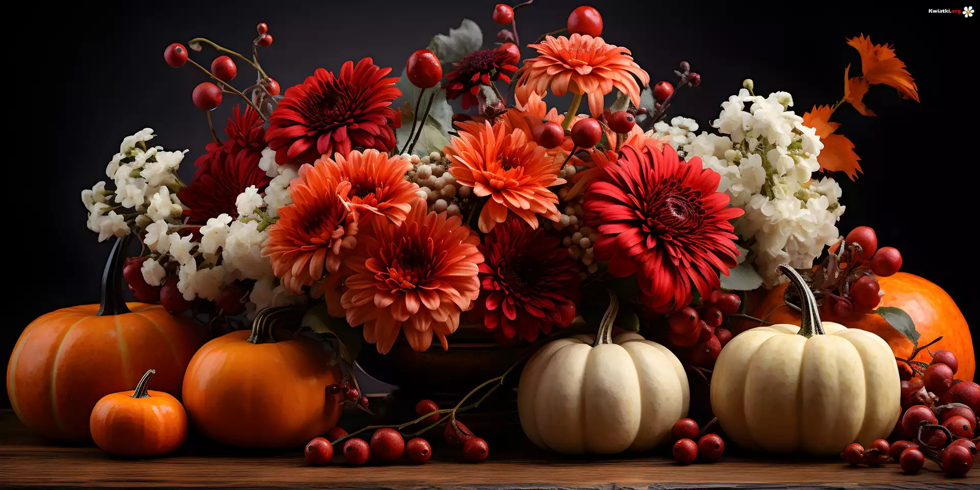 Kwiaty, Bukiet, Dynie, Grafika - Zdjęcia
