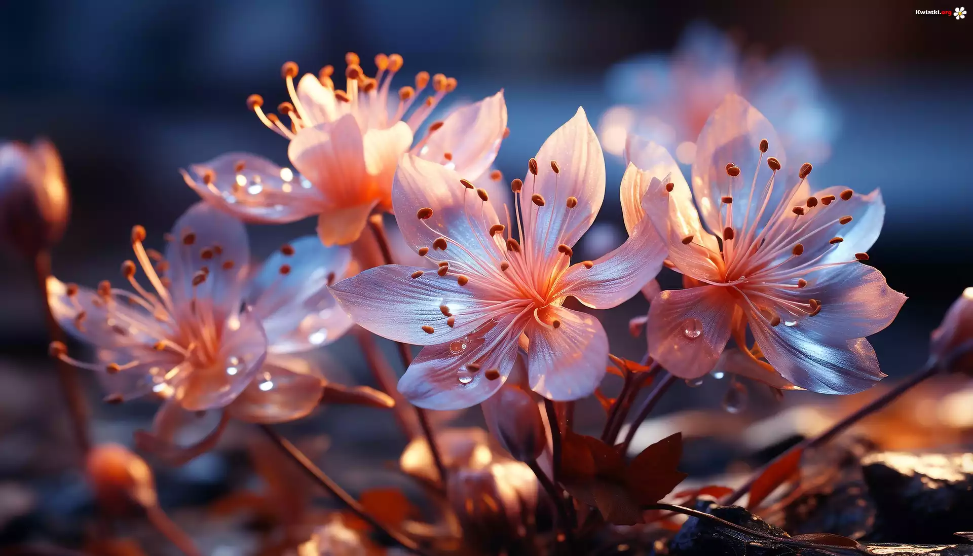Kwiaty, Różowe, Krople, Grafika - Zdjęcia