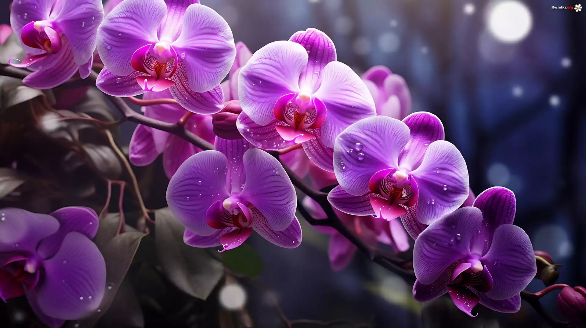 Kwiaty, Storczyk, Krople, Grafika - Zdjęcia
