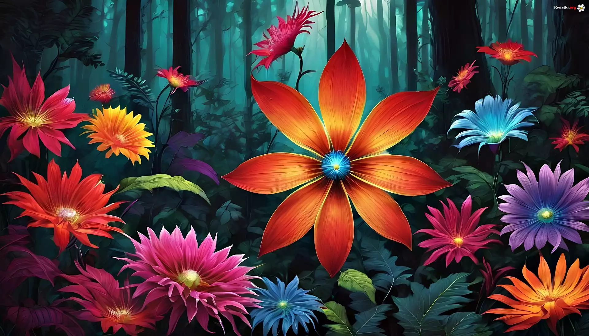 Kwiaty, Kolorowe, Las, Grafika - Zdjęcia