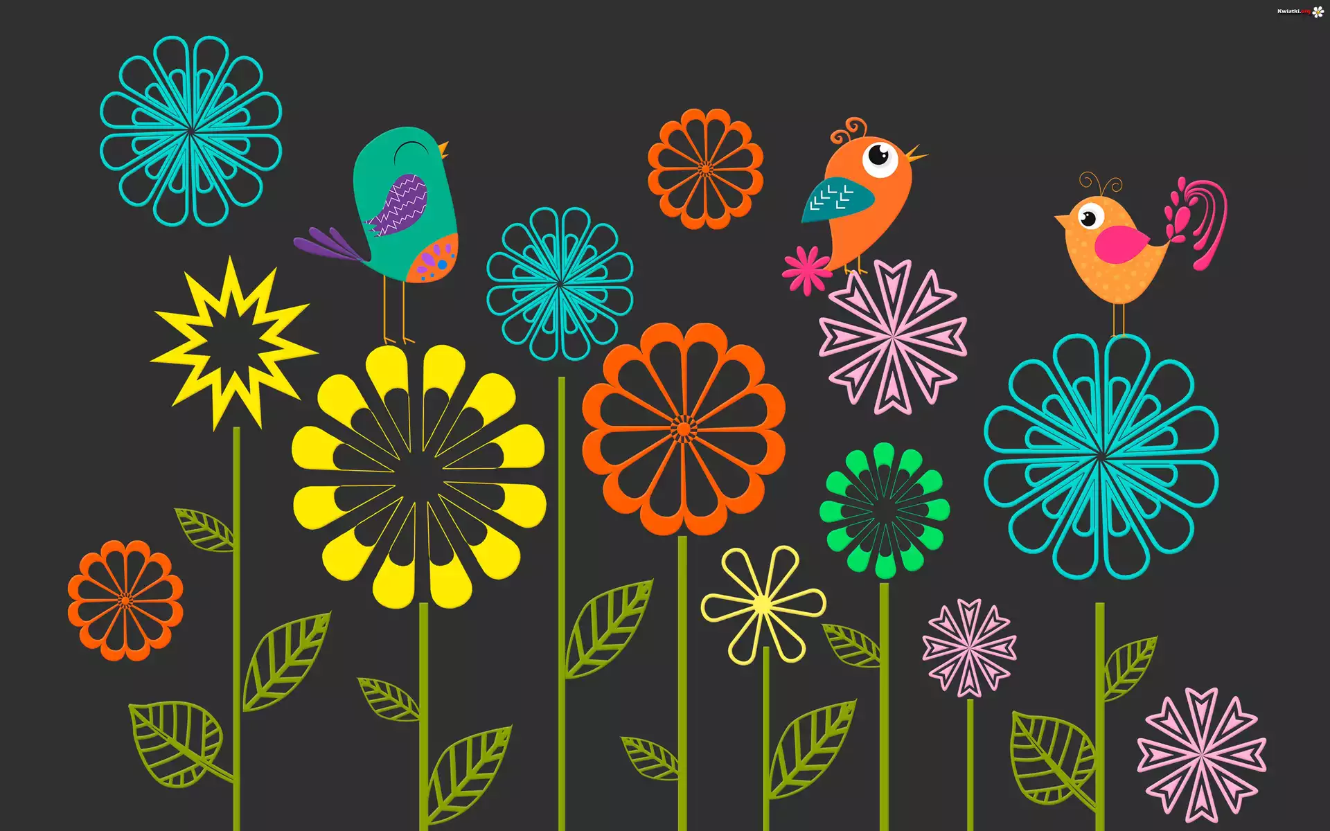 Grafika 2D, Motyw, Kolorowe, Kwiaty, Ptaki - Zdjęcia