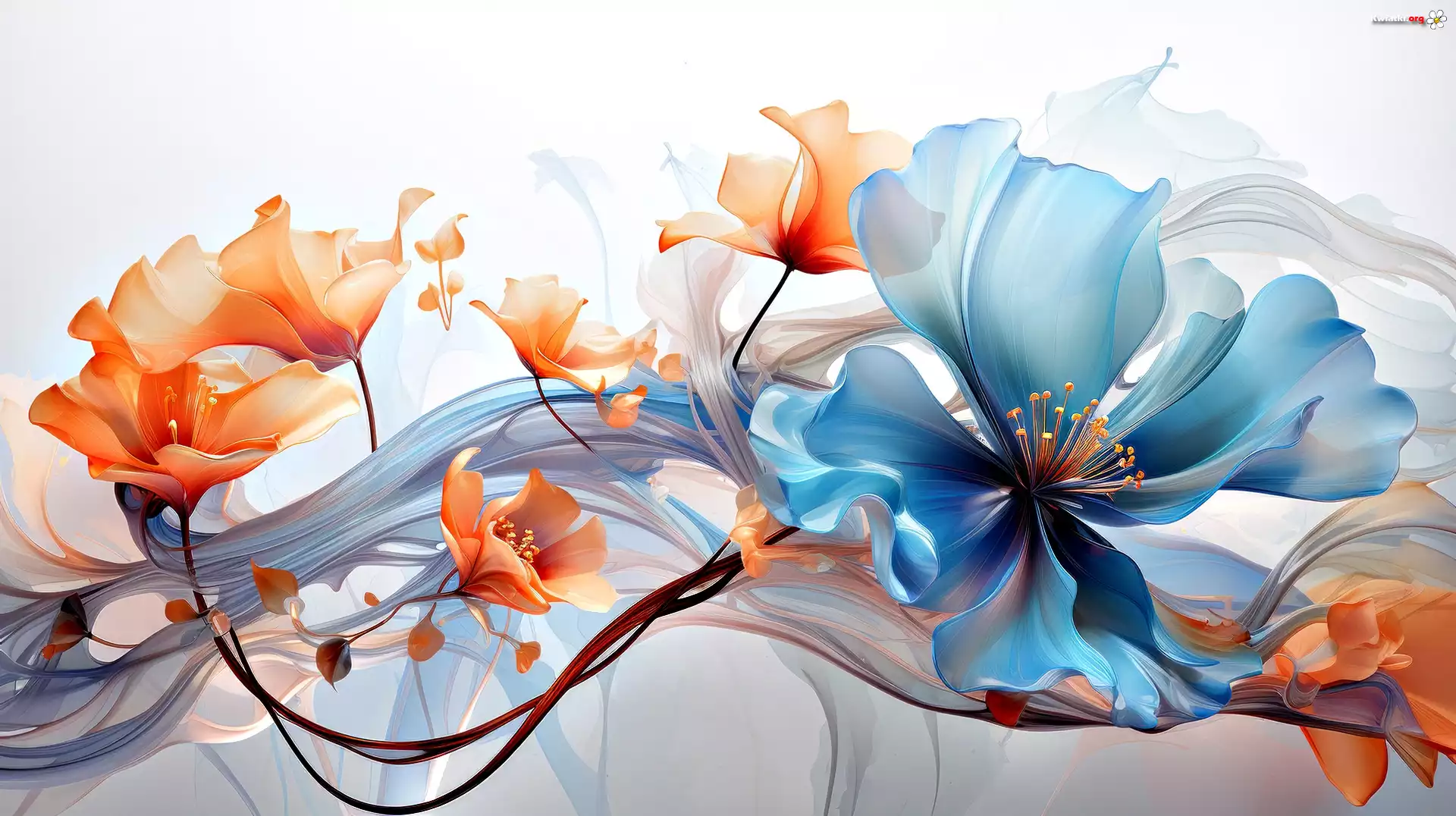 Kwiaty, Pomarańczowe, Niebieski, Grafika - Zdjęcia