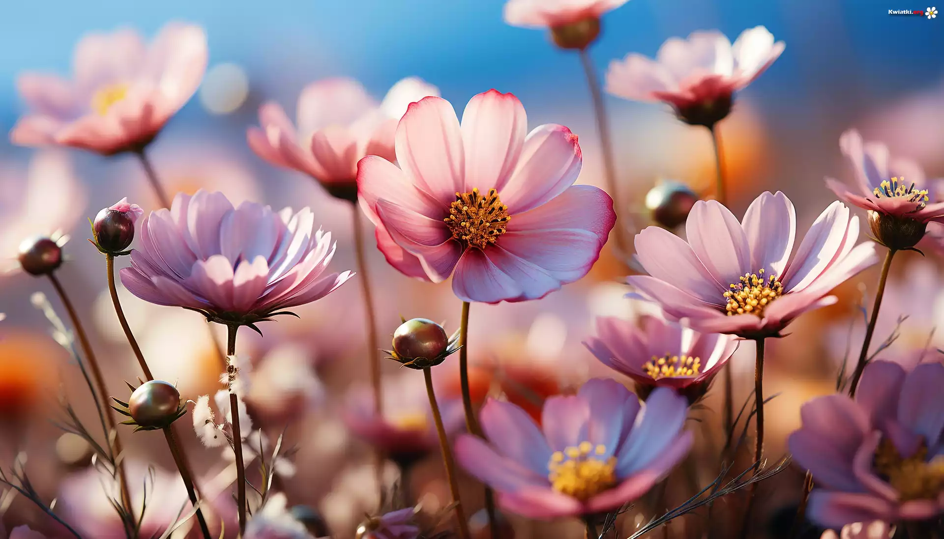 Kwiat Kwiaty, Kosmea, Niebo, Grafika