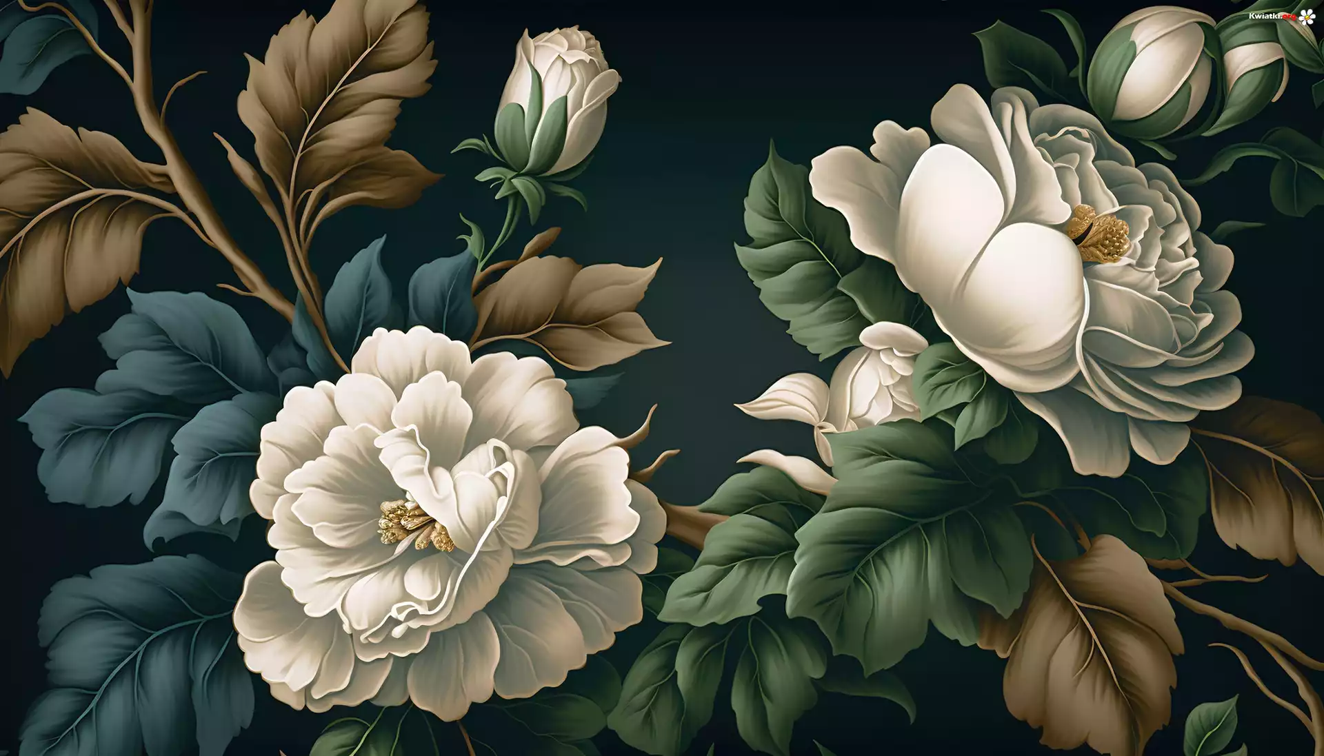 Kwiaty, Białe, Piwonie, Grafika - Zdjęcia
