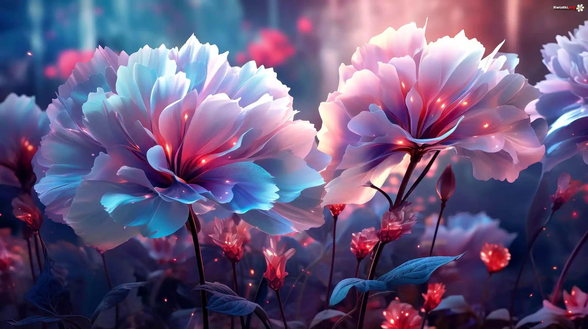 Kwiaty, Abstrakcyjne, Światło, Grafika - Zdjęcia