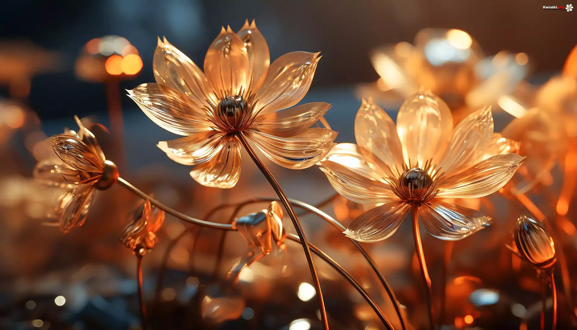 Kwiaty, Pomarańczowe, Szklane, Grafika - Zdjęcia