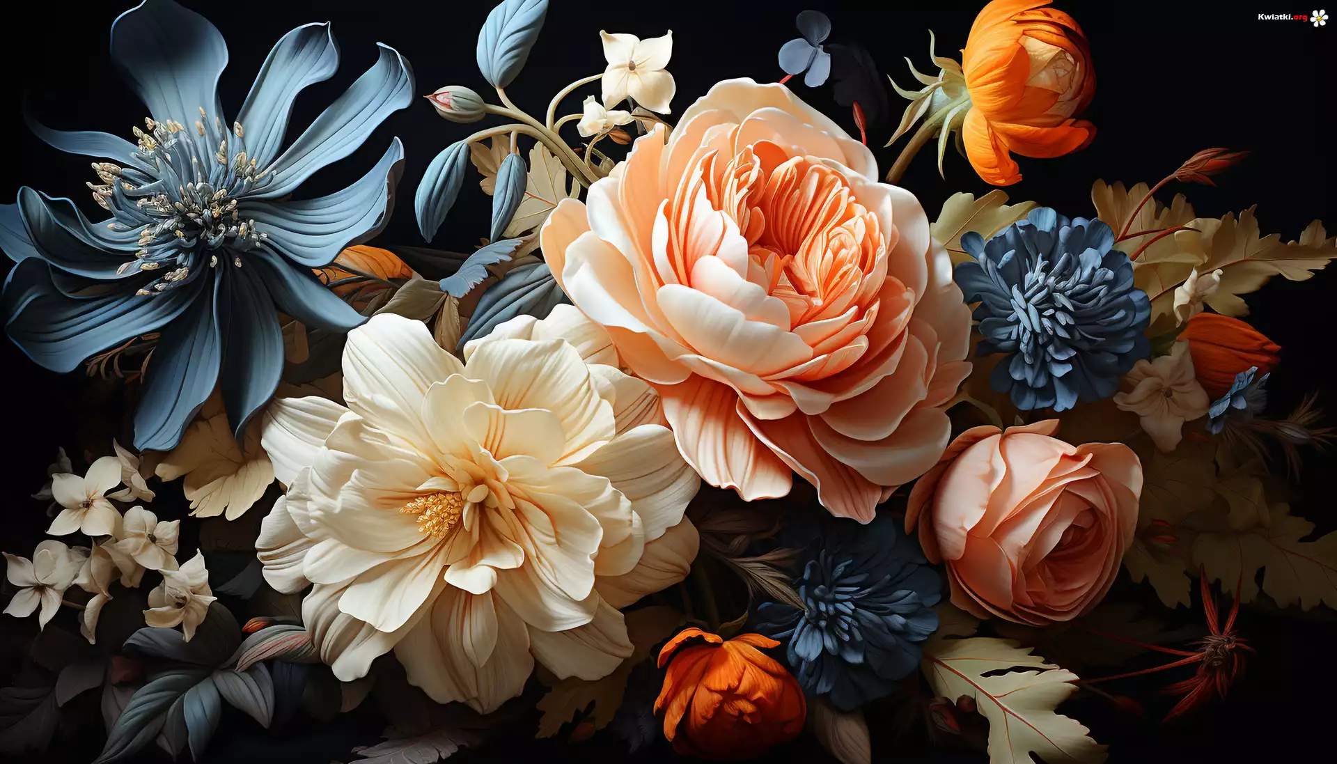 Kwiaty, Czarne tło, Grafika - Zdjęcia