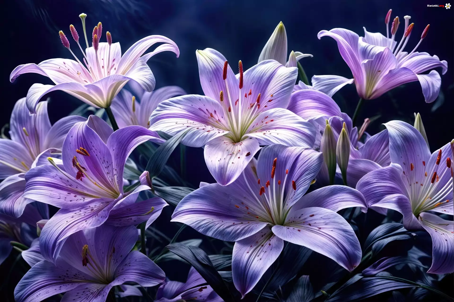 Lilie, Kwiaty, Fioletowe, Grafika - Zdjęcia
