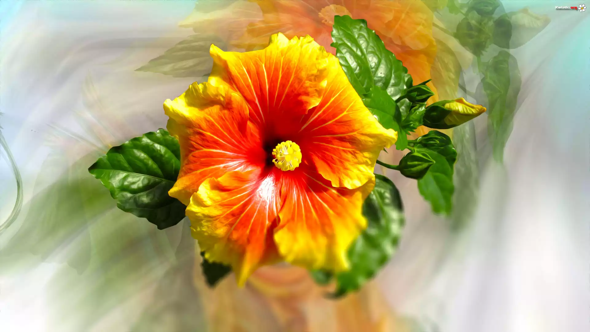 Grafika, Hibiskus, Listki, Rozmycie - Zdjęcia