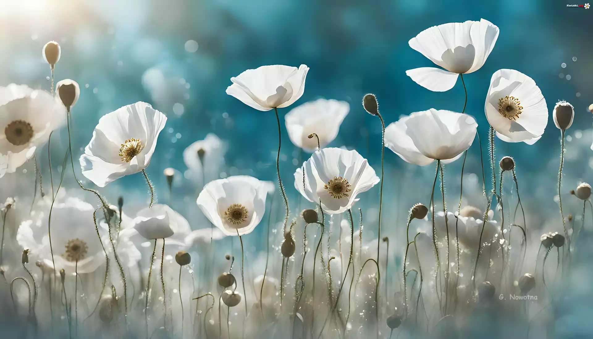 Maki, Białe, Kwiaty, Grafika - Zdjęcia