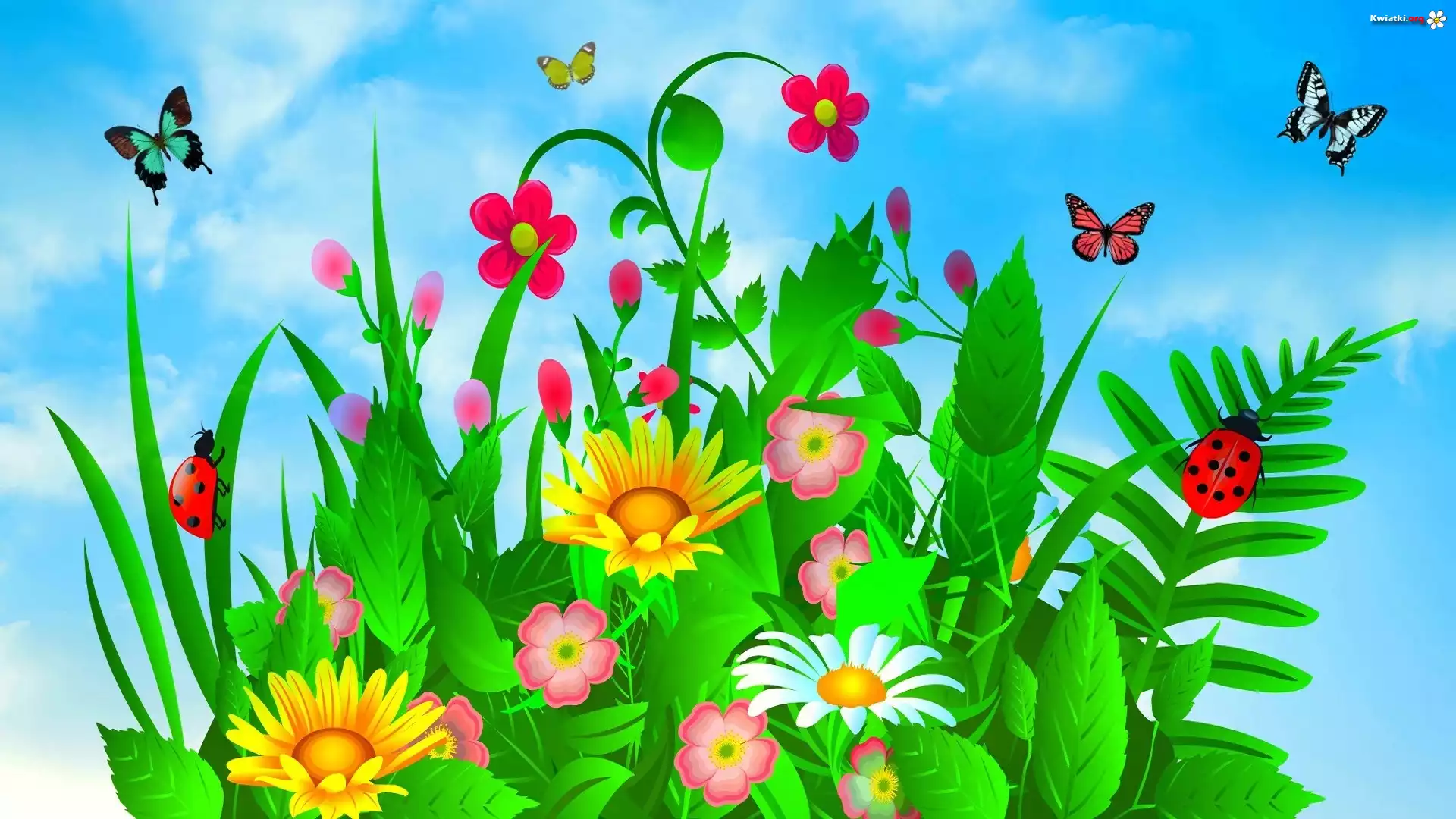 Grafika 2D, Kwiatki, Motyle, Biedronki - Zdjęcia