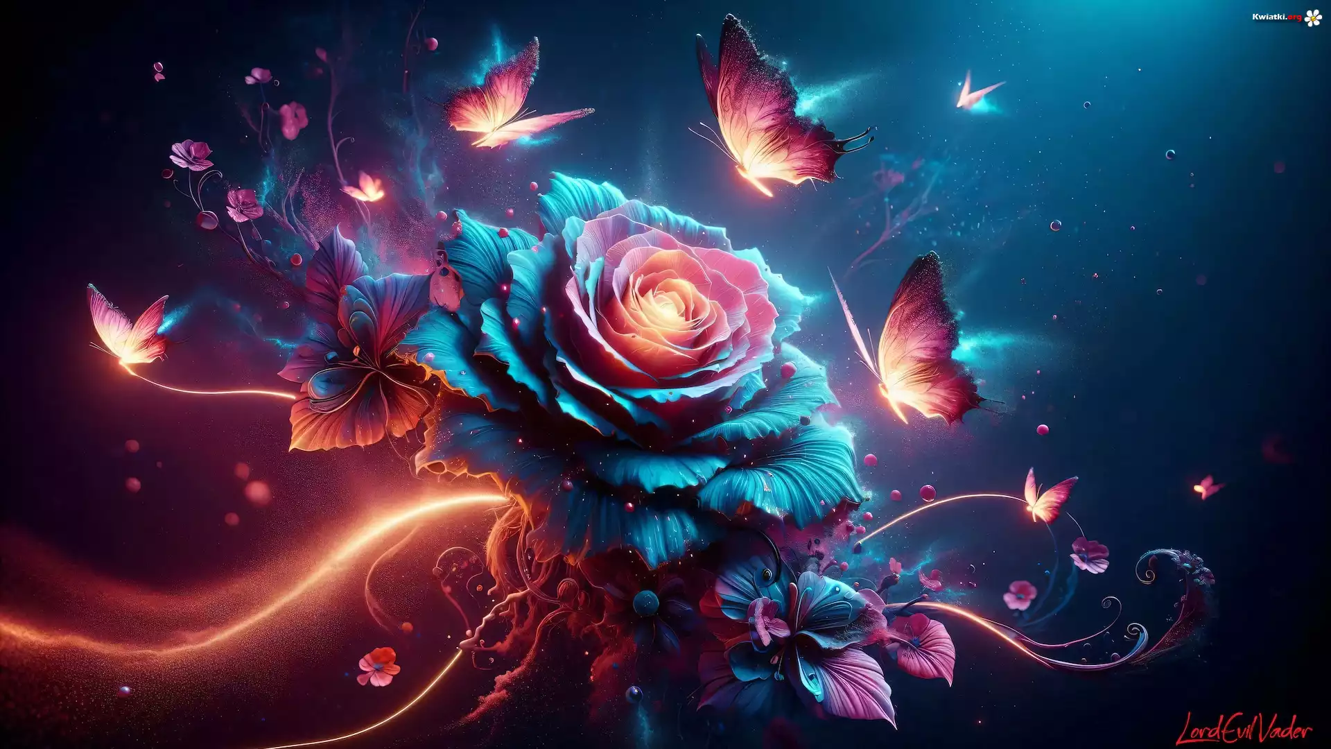 Kwiat Grafika, Róża, Motyle