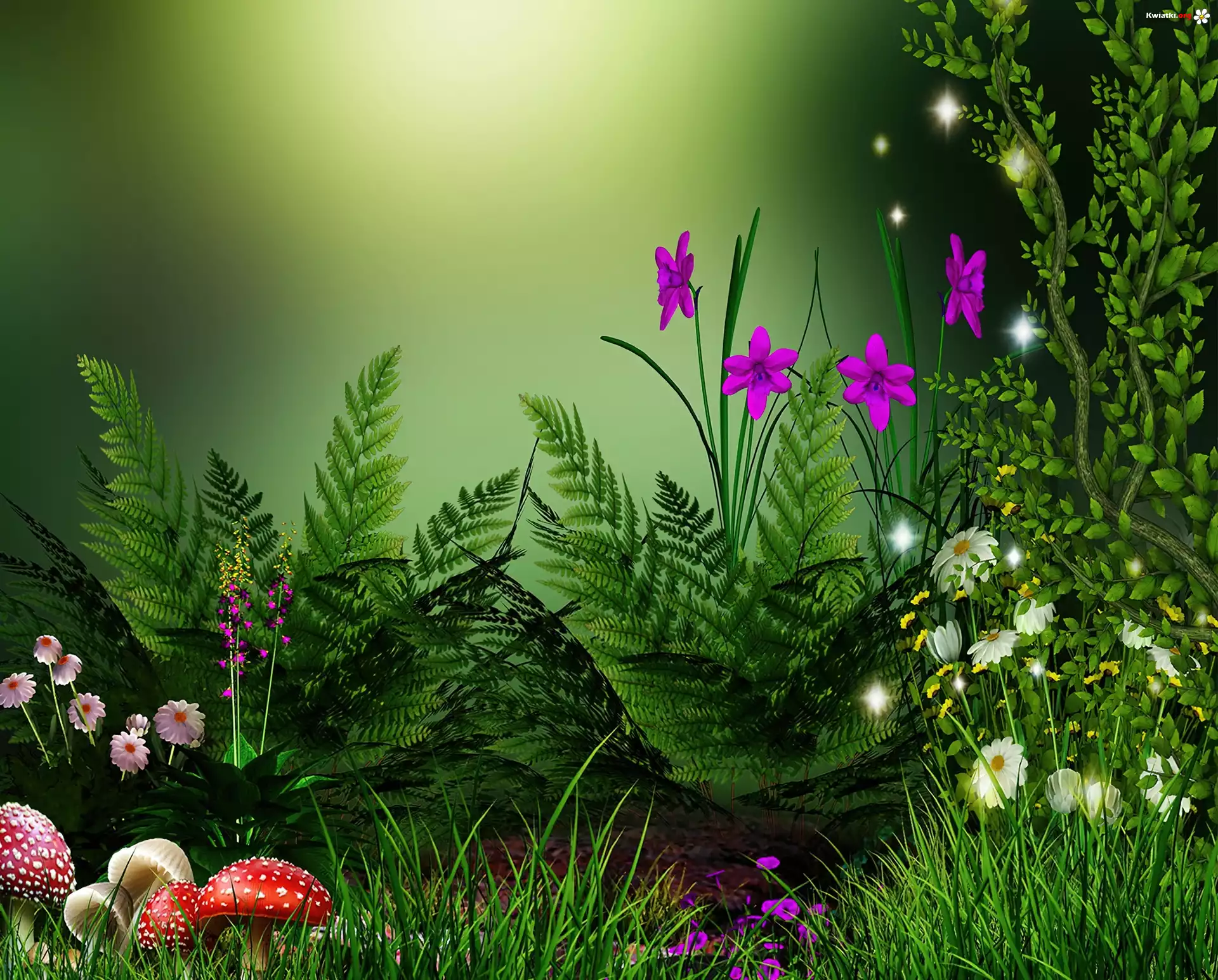 Grafika, Kwiaty, Muchomorki, Paprocie - Zdjęcia