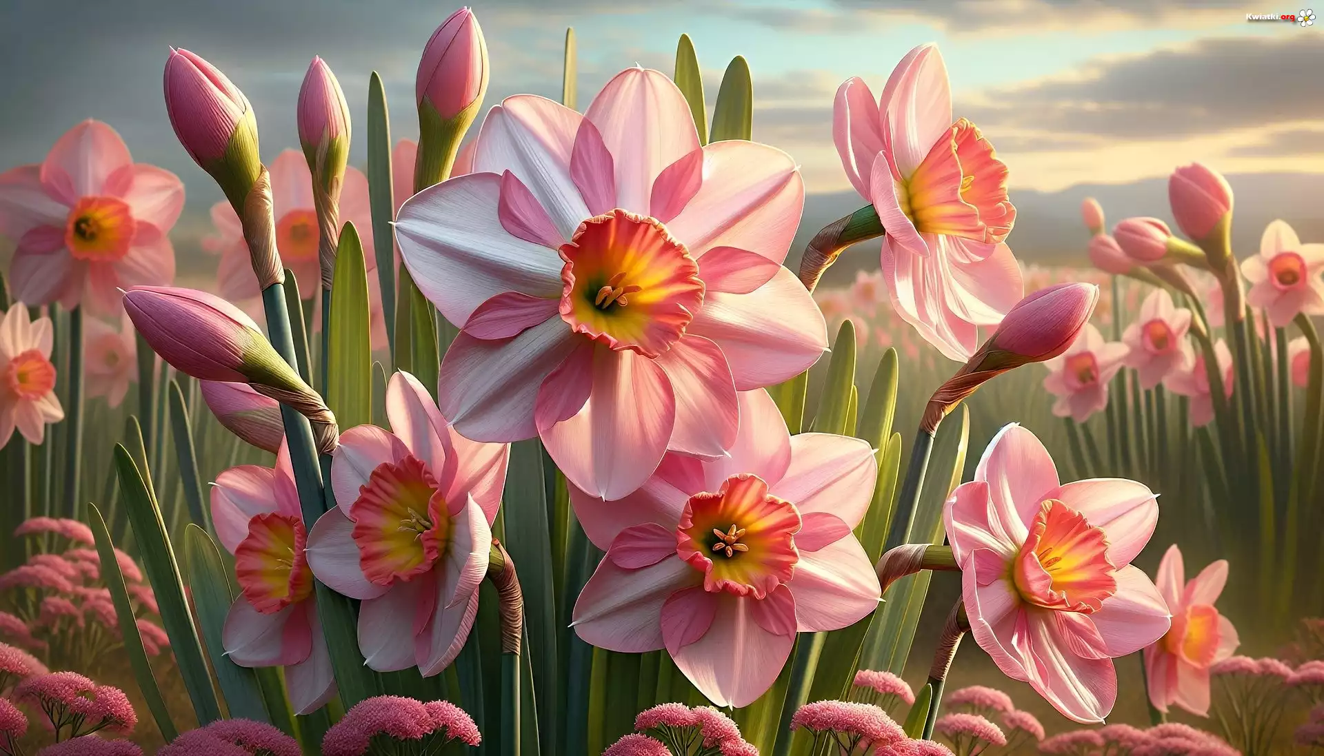 Narcyzy, Różowe, Kwiaty, Grafika - Zdjęcia