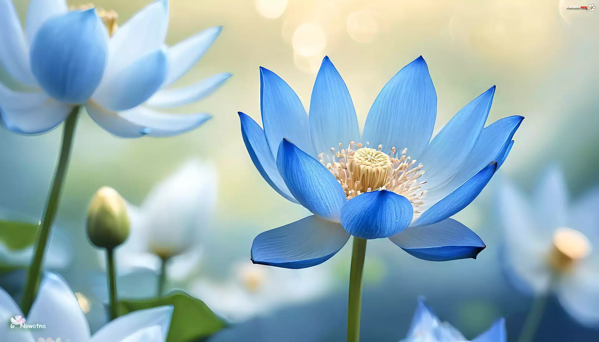 Niebieski, Kwiat, Lotos, Grafika - Zdjęcia