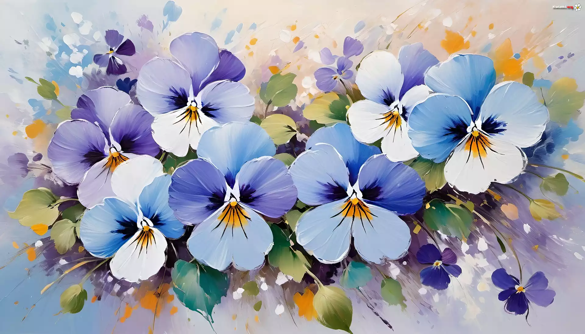 Niebieskie, Fioletowe, Bratki, Grafika - Zdjęcia