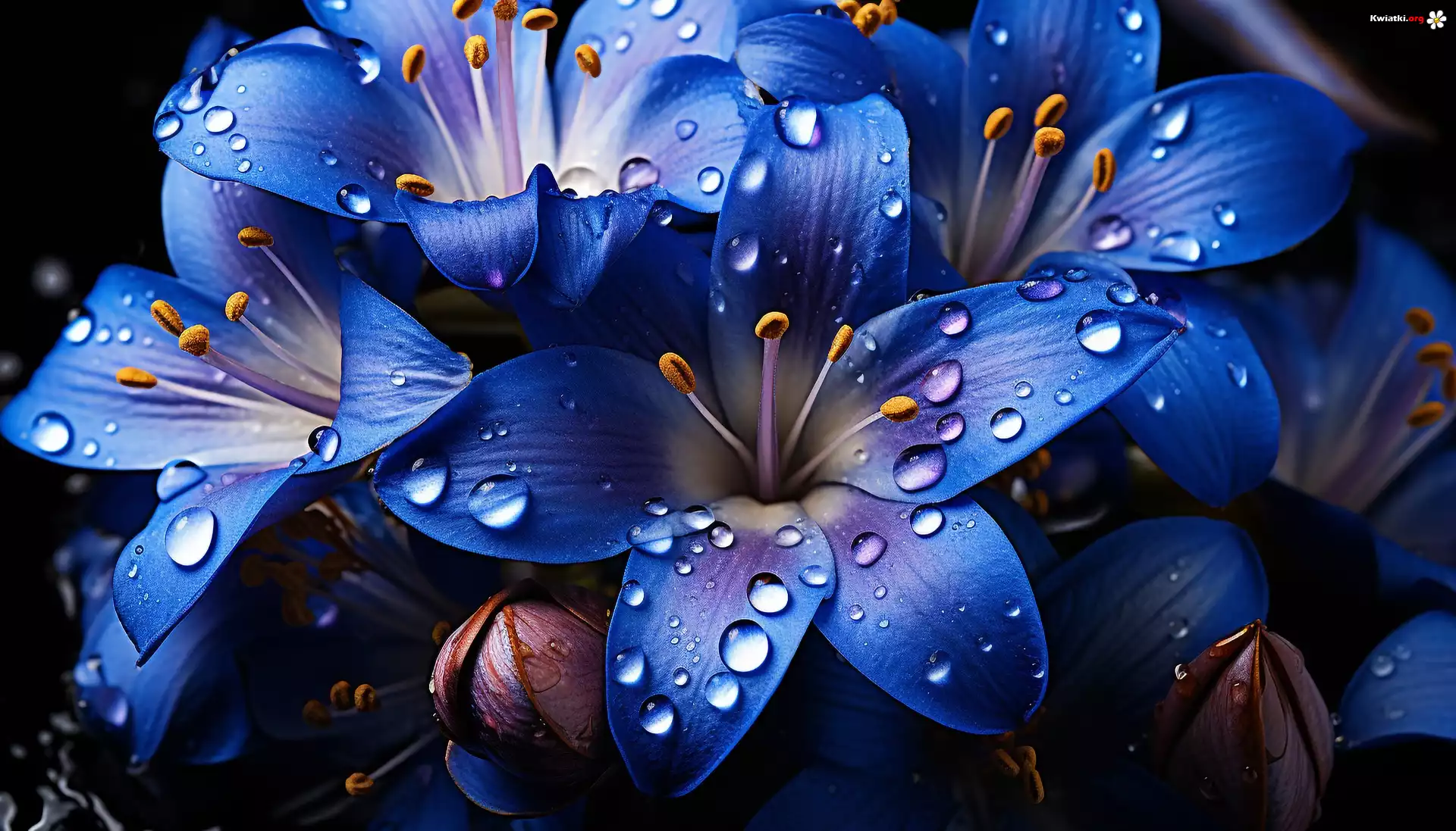Kwiat Niebieskie, Kwiaty, Krople, Grafika