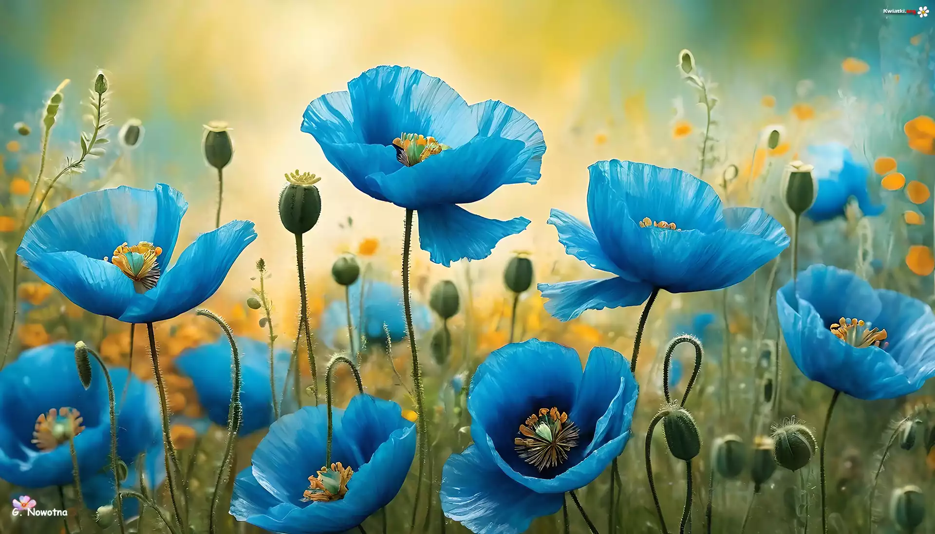 Niebieskie, Maki, Kwiaty, Grafika - Zdjęcia