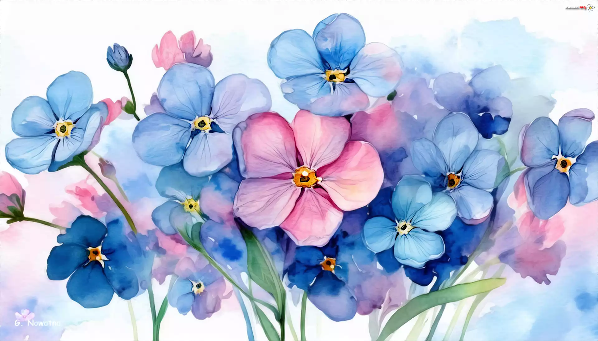 Niebieskie, Różowe, Kwiaty, Grafika - Zdjęcia
