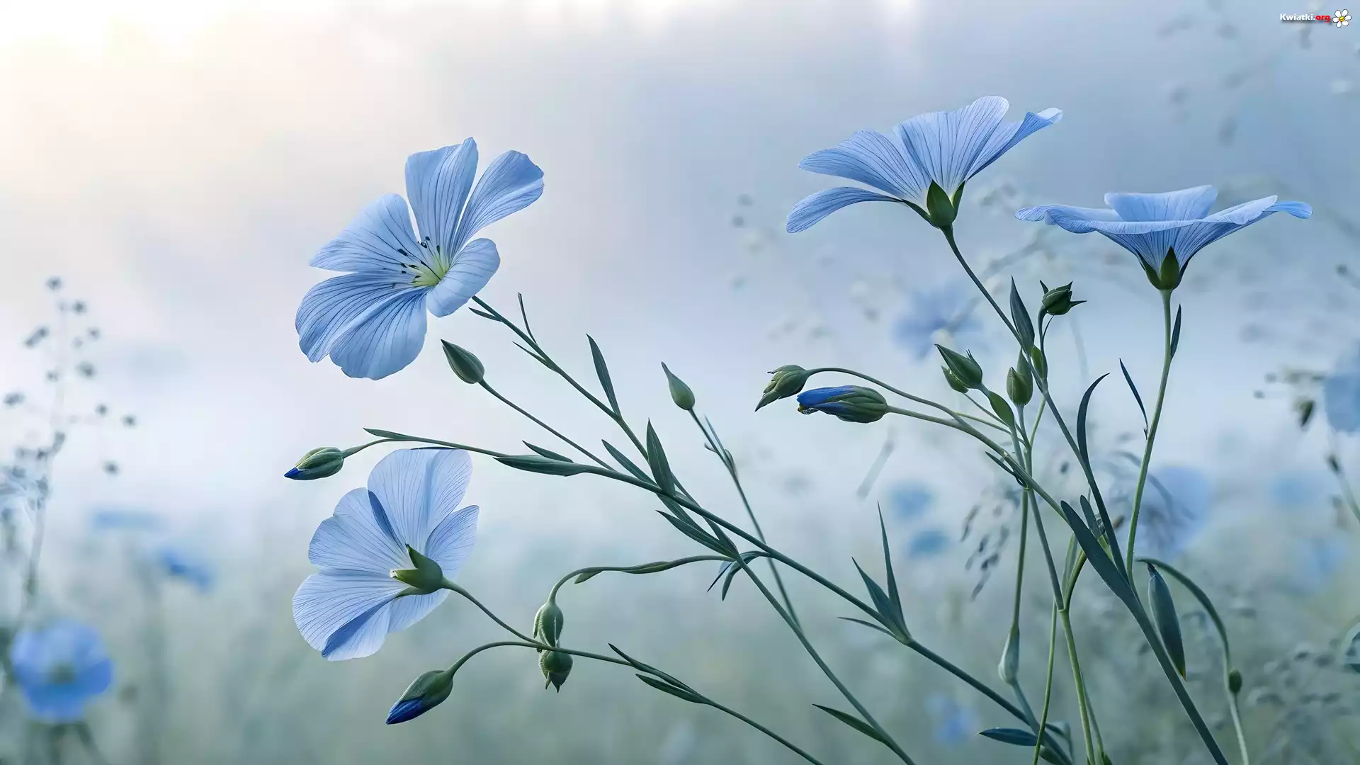 Kwiat Niebieskie, Kwiaty, Len, Mgła, Grafika