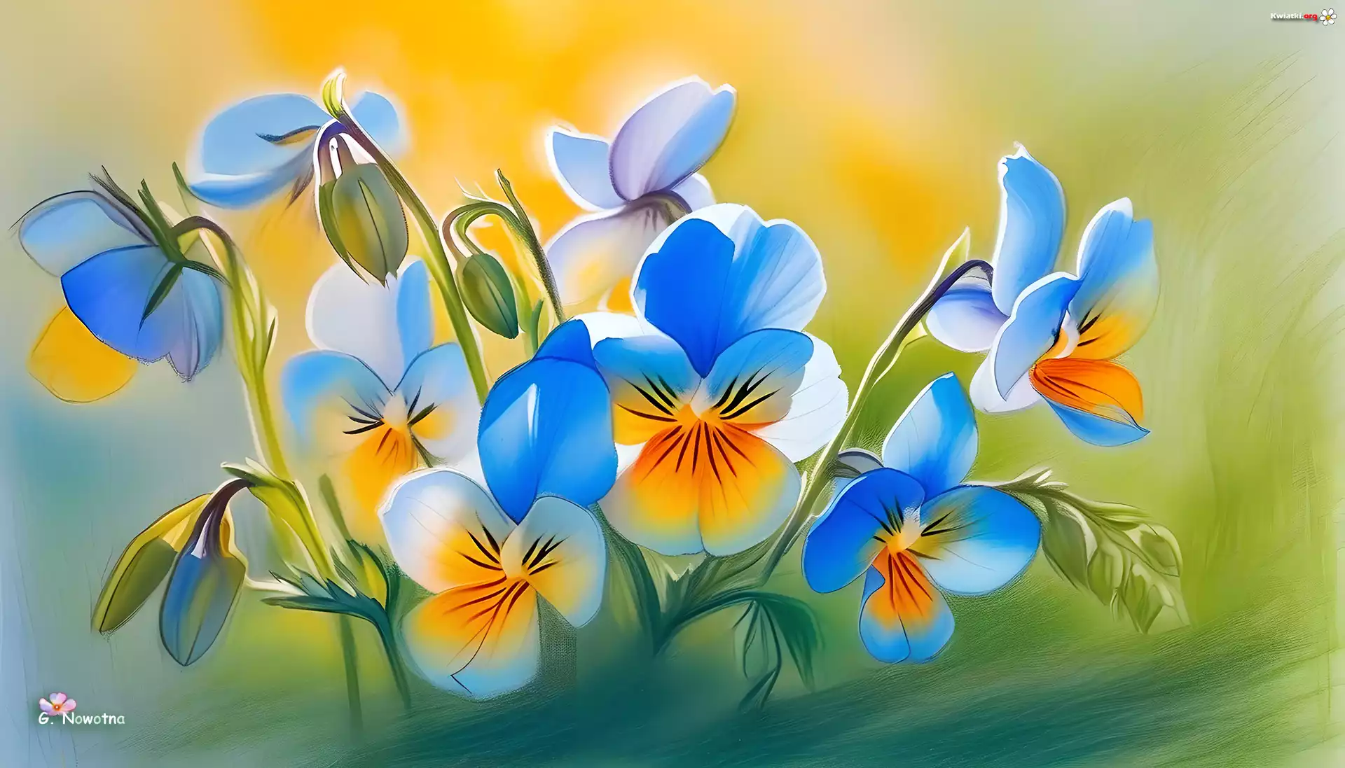 Kwiat Niebiesko-żółte, Bratki, Grafika
