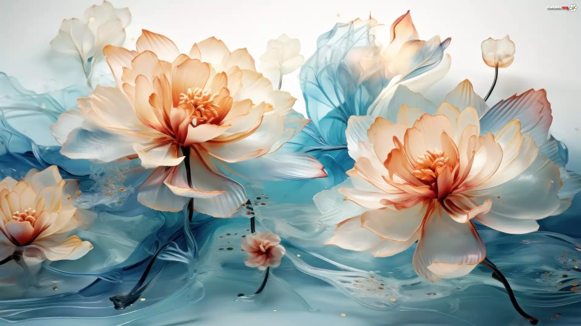 Kwiaty, Grafika, Niebiesko-białe, Tło - Zdjęcia