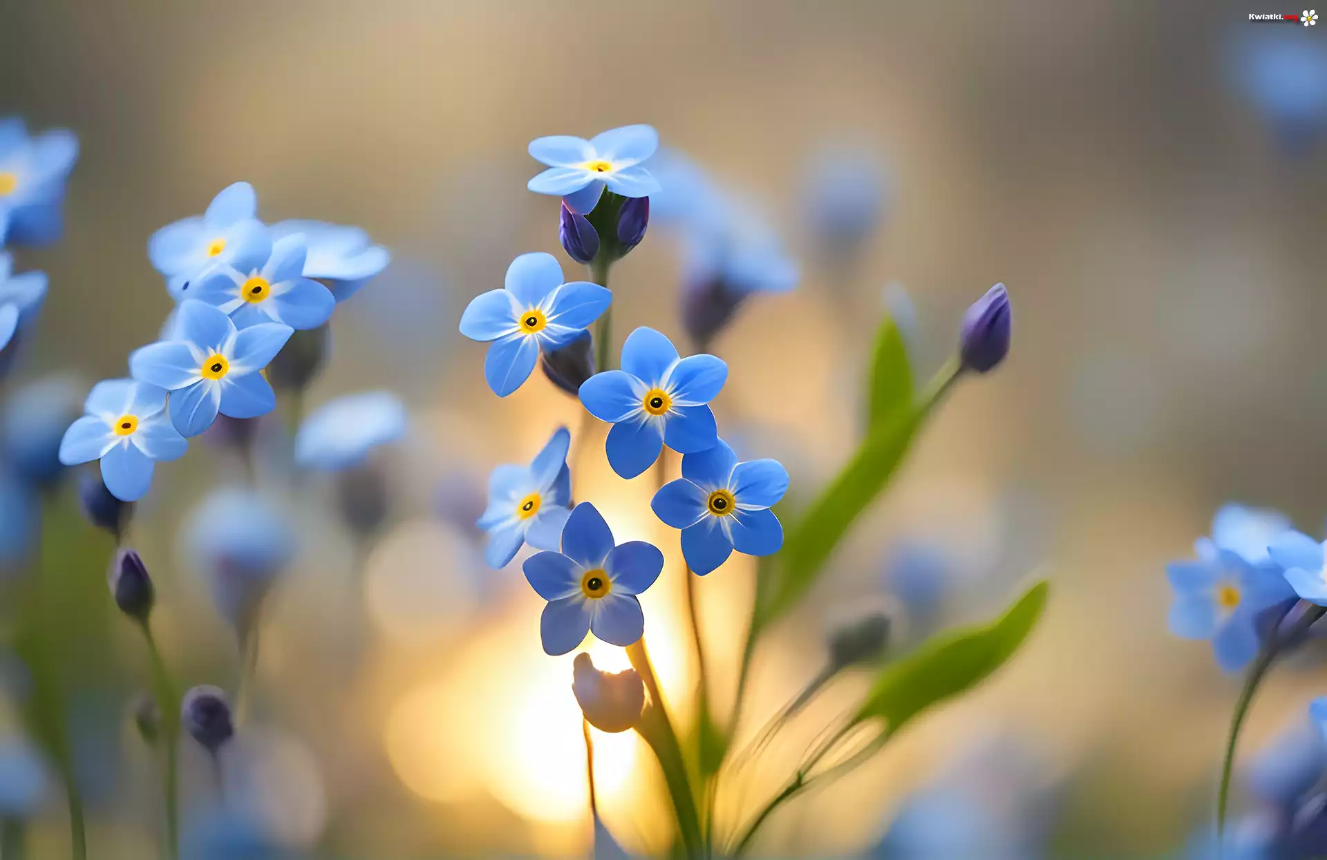 Niezapominajki, Niebieskie, Kwiaty, Grafika - Zdjęcia